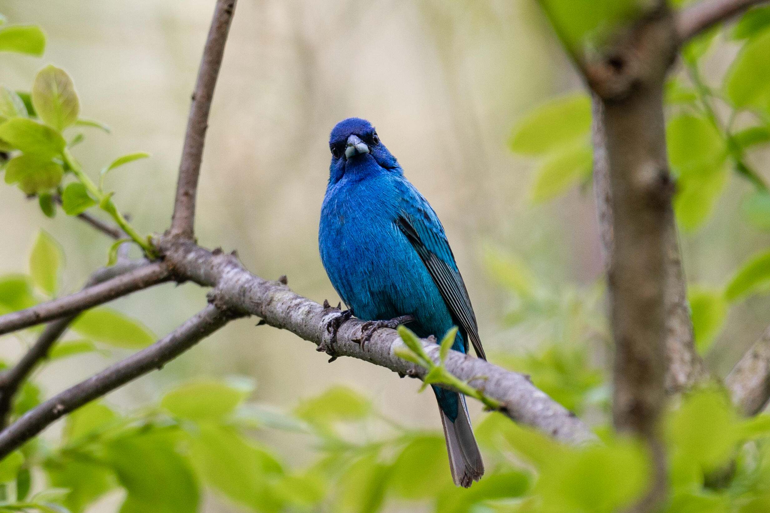 Indigo Bunting: Fairly common throughout the Midwest, look for indigo buntings on the tallest perches in weedy fields and shrubby forest edges. © Fauna Creative